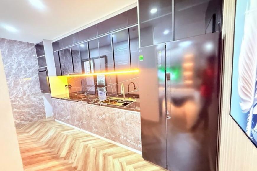 - Nhà full bộ sàn gỗ đắt tiền và nội thất cao cấp từ bếp, giường tủ, điều hòa, tủ lạnh, thiết bị vệ sinh,... Tất cả đều nhập khẩu từ Ý và Nhật trị giá trên 800 triệu, khách mua vào ở ngay